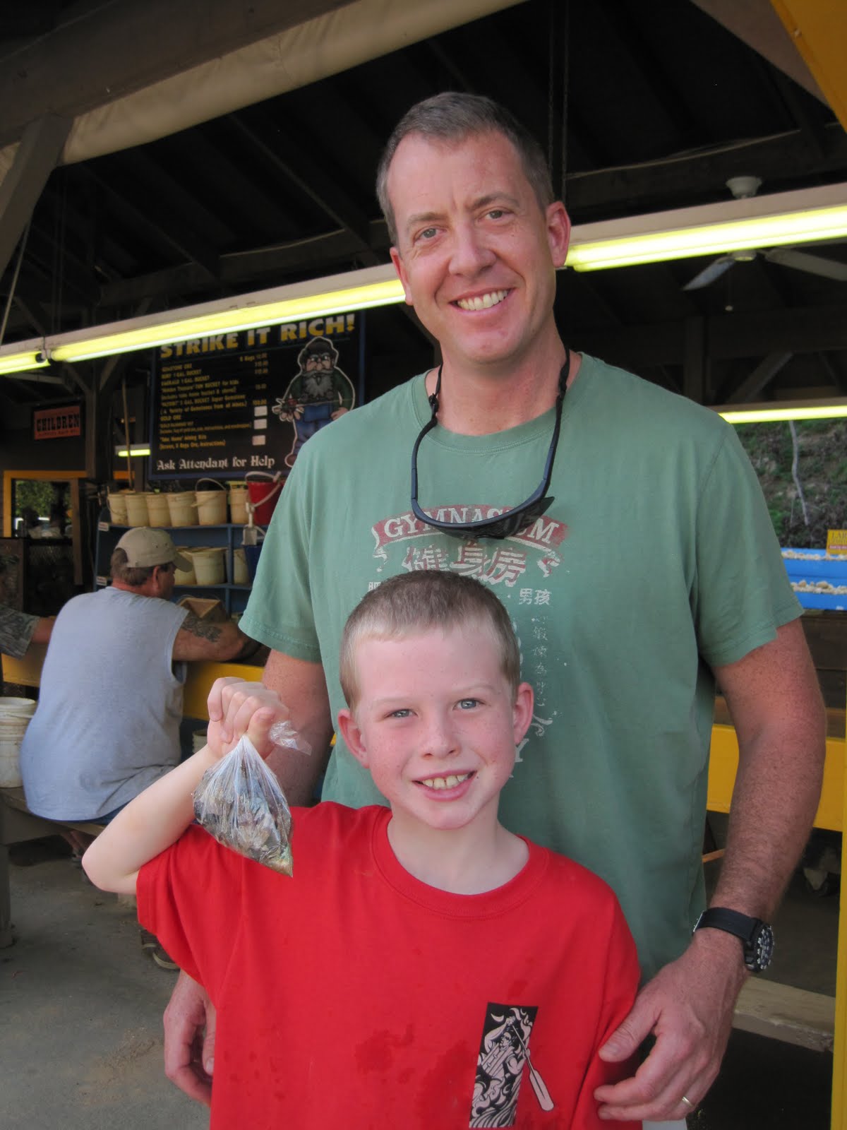 We also went into Cherokee for the evening. The major objective was to see “Unto These Hills”, an outdoor production that’s been going on for 60+ years to chronicle the history of the Cherokee Indians, particularly around the time of the Trail of Tears. But because it’s the touristy town of Cherokee and there are a million ways to part you from your money, Jimmy and Mac went gem mining. I’m still waiting for all those rubies and sapphires and emeralds to be made into something to adorn my ears and fingers…